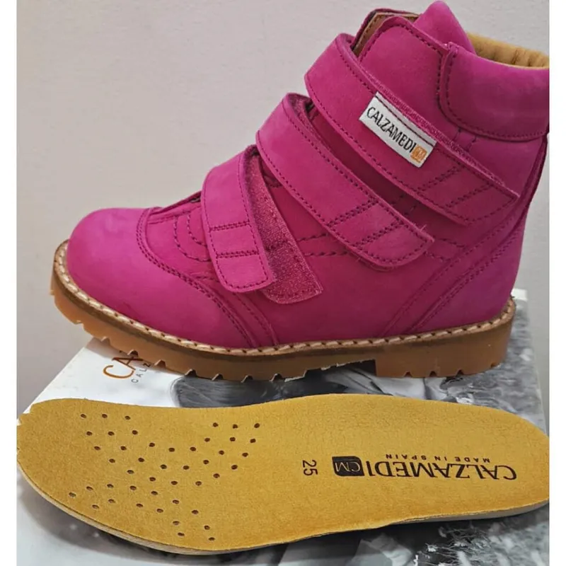 Ghete ortopedice roz pentru copii, din piele naturala de bovina, cu aspect velurat