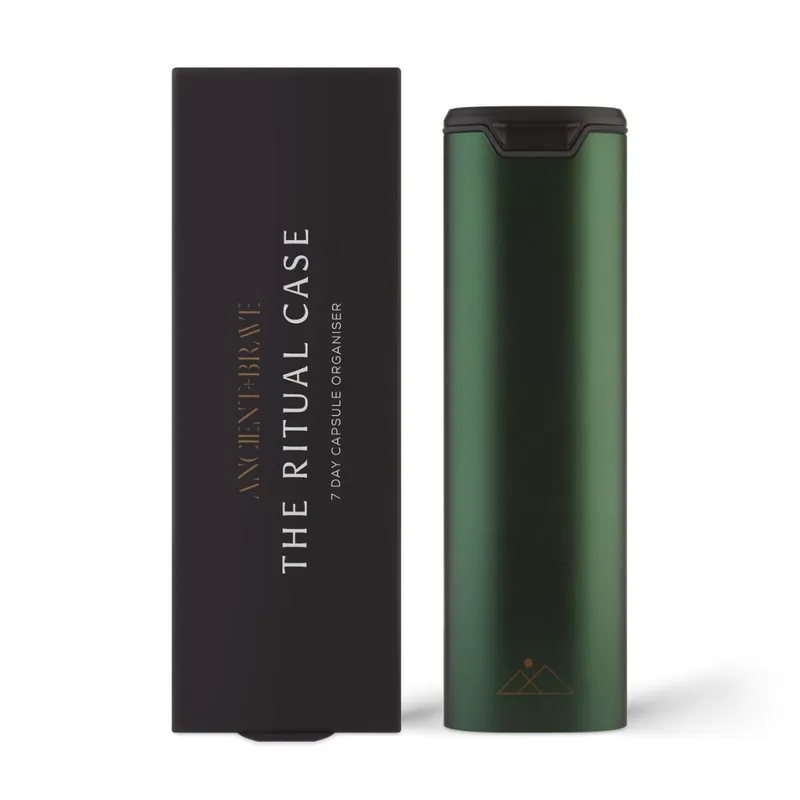 Organizator de pastile premium din aluminiu verde, fara BPA, pentru o rutina zilnica eleganta si sigura